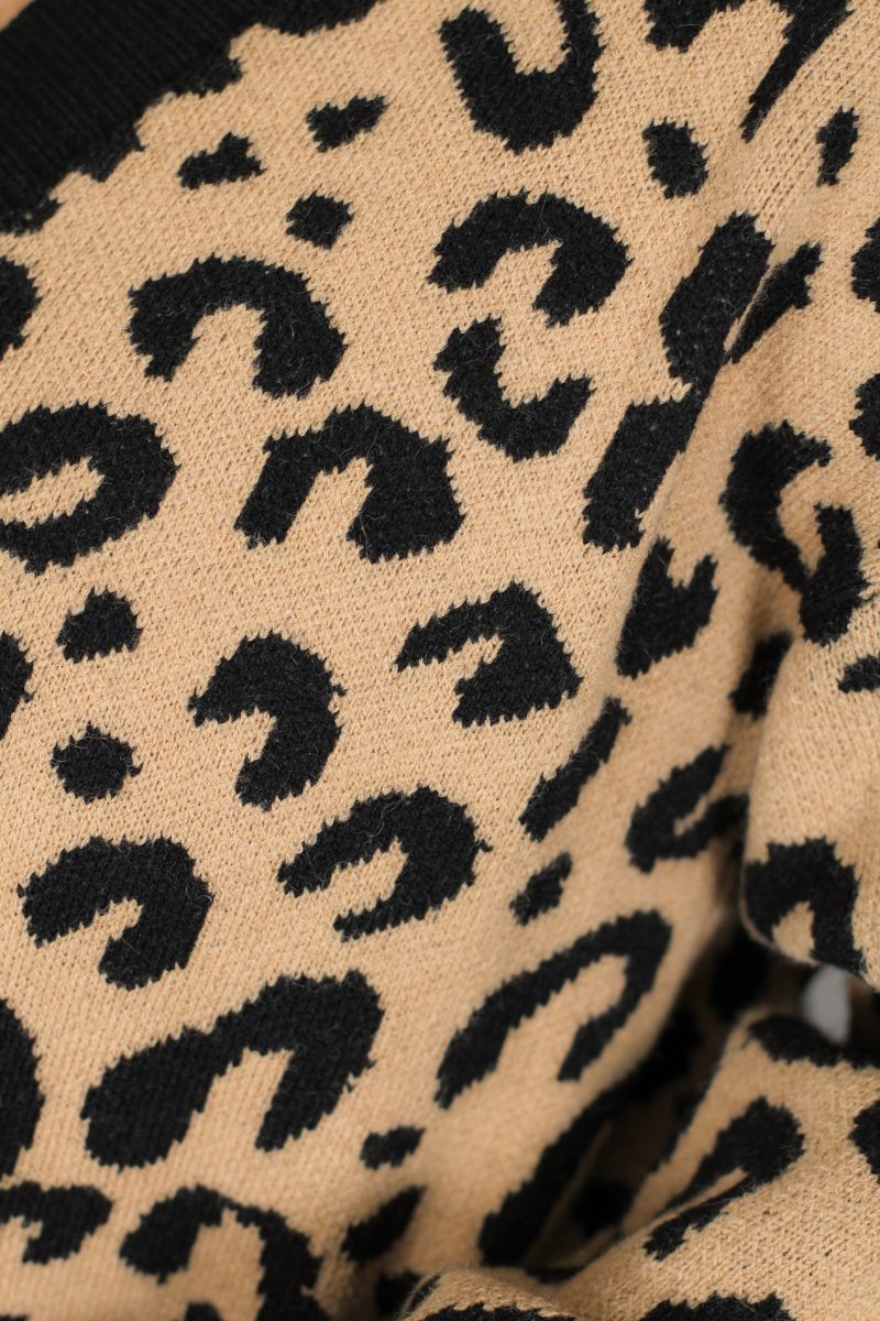 Es de un tejido súper suave y abrigadito. El cardigan tiene un diseño animal print que está súper en tendencia y el pantalónde tiro alto, ancho y fluido que le queda bien a todo el mundo.