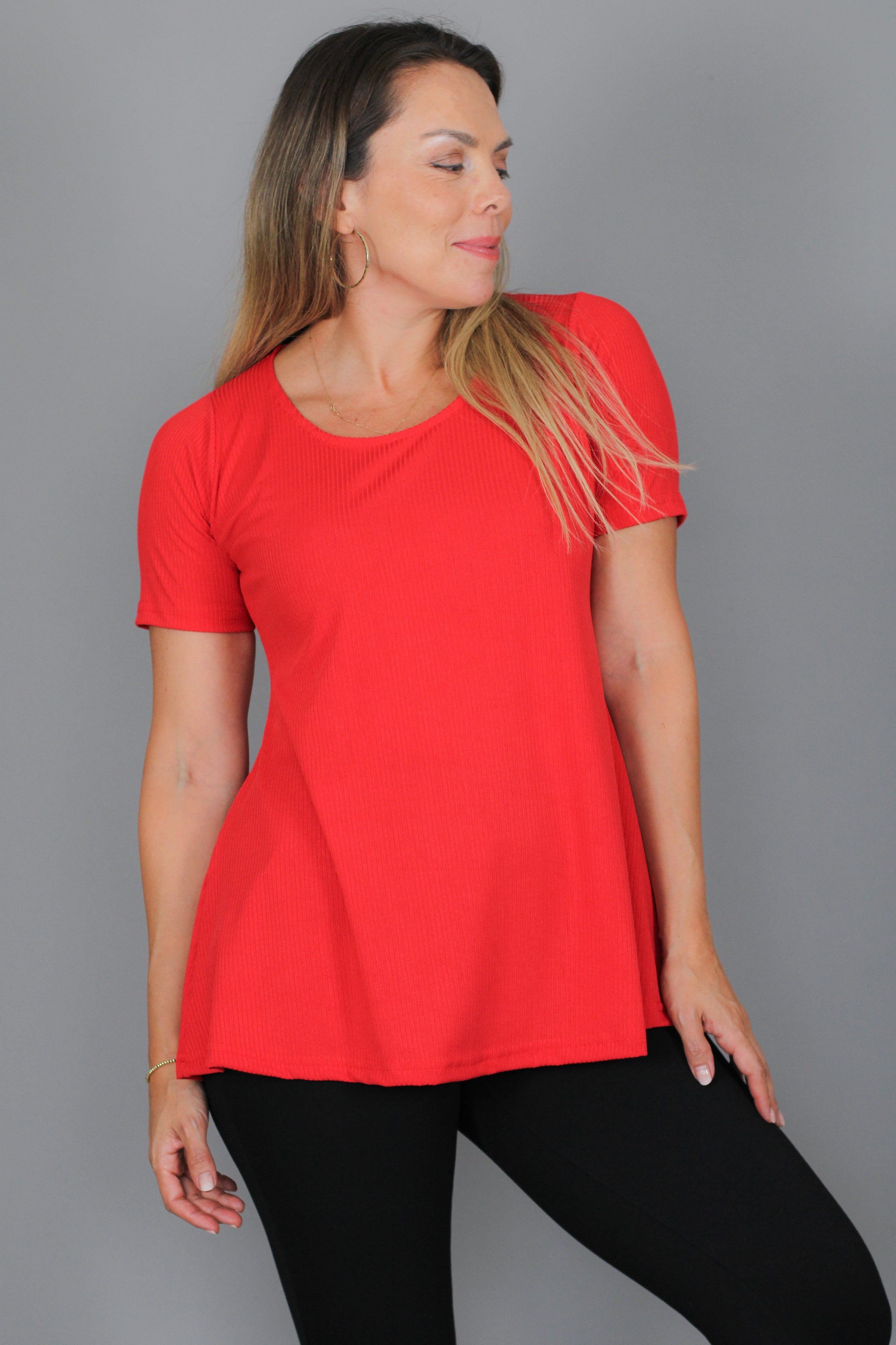 ¡Miren lo que es esta polerita!  Es de esa tela acanalada que es un 7, porque no solo es súper suave, sino que también tiene una caída espectacular.
